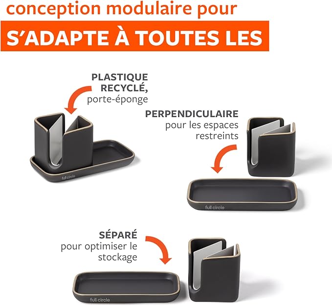 Set modulable pour ranger éponge, brosse et produit vaisselle.